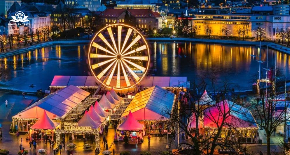 Bergen dường như một thiên đường lễ hội Giáng sinh vào tháng 12, với khu chợ truyền thống dọc bến tàu và khung cảnh vịnh hẹp Na Uy tuyệt đẹp. Người dân địa phương và khách du lịch đều yêu thích một ly cocktail Glogg và bánh gừng nướng trong khi dạo bước, ngắm nhìn những căn nhà gỗ nhỏ xinh dưới màn tuyết trắng lãng mạn.