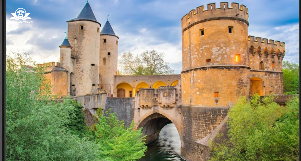 Bước qua cây cầu đá cổ dẫn vào cổng thành, du khách sẽ như lạc vào một không gian thời Trung Cổ đầy huyền bí. Những bức tường đá rêu phong, lối đi nhỏ hẹp và tháp canh sừng sững kể lại câu chuyện lịch sử đầy oai hùng của Metz. Đứng trên những tháp canh cao, phóng tầm mắt ngắm nhìn toàn cảnh thành phố khi hoàng hôn buông xuống, bạn sẽ thưởng lãm vẻ đẹp lãng mạn pha lẫn chút bí ẩn của Metz.