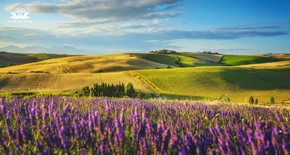 Tuscany không chỉ nổi tiếng với những cánh đồng nho mà còn có các cánh đồng hoa oải hương đẹp nhất, rực rỡ ở châu Âu vào mùa hè. Vùng Val d’Orcia đặc biệt thu hút với vẻ đẹp yên bình và quyến rũ.