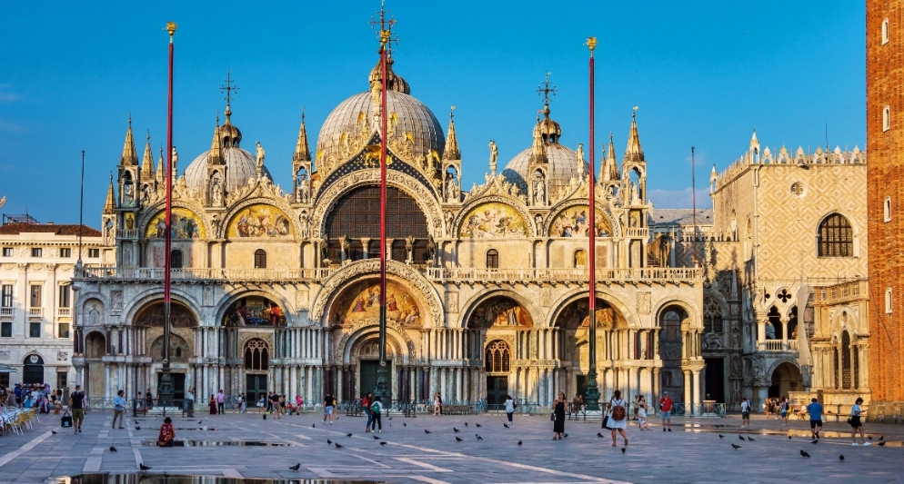 Nằm ở trung tâm Venice, Piazza San Marco là một trong những quảng trường đẹp nhất thế giới, bao quanh bởi những công trình kiến trúc tuyệt mỹ như Nhà thờ St. Mark’s, Cung điện Doge và tháp chuông Campanile.