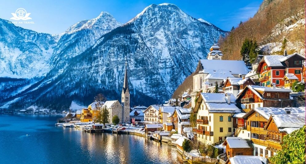 Làng cổ Hallstatt đẹp như tranh vẽ là điểm đến lý tưởng vào mùa đông mà bất cứ khách Việt nào như chị Huyền Trang tới du lịch Đông Âu đều sửng sốt ‘quá xinh đẹp và lưu luyến’. Những ngôi nhà cổ kính nằm sát bờ hồ, bao quanh bởi núi tuyết, tạo nên khung cảnh yên bình và lãng mạn.