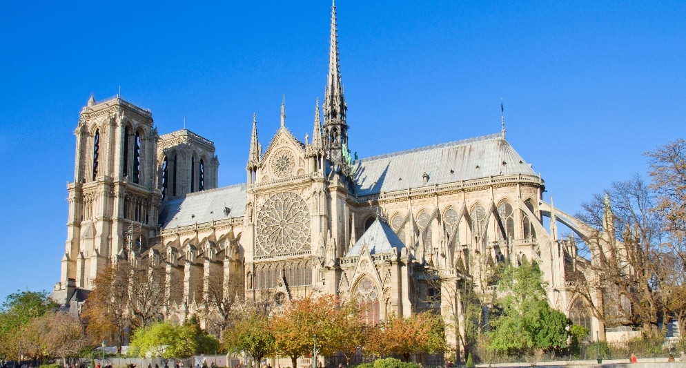 Nhà thờ Đức Bà Paris là biểu tượng nổi tiếng nhất của kiến trúc Gothic tại châu Âu cũng như nhân loại. Công trình này xây dựng từ thế kỷ XII với những đặc điểm đặc trưng như cửa sổ hoa hồng rực rỡ, những bức tượng điêu khắc tinh xảo và hệ thống trụ bay độc đáo. Du khách có thể leo lên tháp chuông để ngắm nhìn toàn cảnh Paris từ trên cao.