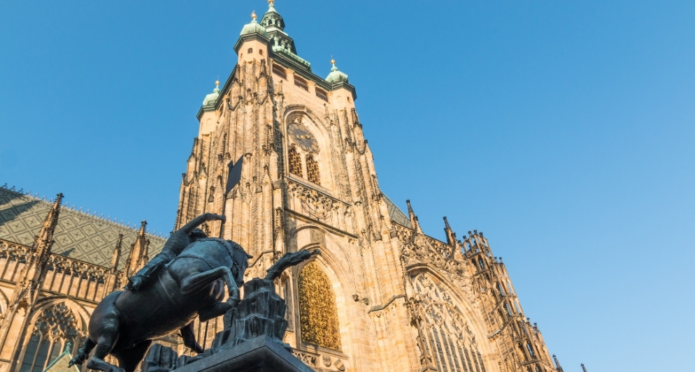 Tọa lạc trong khuôn viên Lâu đài Prague, nhà thờ Saint Vitus là một trong những kiệt tác kiến trúc Gothic đáng trải nghiệm khi du lịch Đông Âu. Với mái vòm cao vút, các bức bích họa tinh tế và lăng mộ của các vị vua Bohemia, công trình này là điểm đến không thể bỏ qua khi du khách ghé thăm Prague.