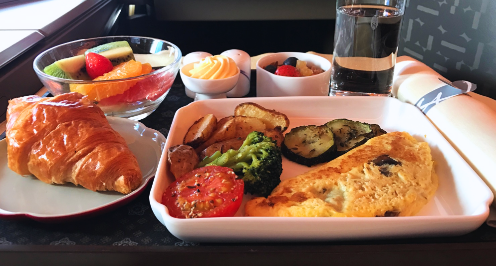 Một suất ăn trên tàu bay Airbus A350 của China Southern Airlines đi châu Âu