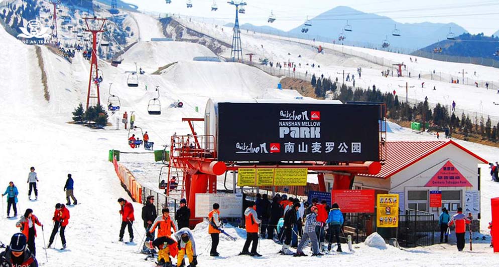 Đây là khu trượt tuyết lớn nhất ở Bắc Kinh với hệ thống 25 đường trượt thiết kế phù hợp mọi trình độ. Nanshan Ski Village còn có công viên trượt tuyết dành riêng cho những người yêu thích phong cách tự do (freestyle).