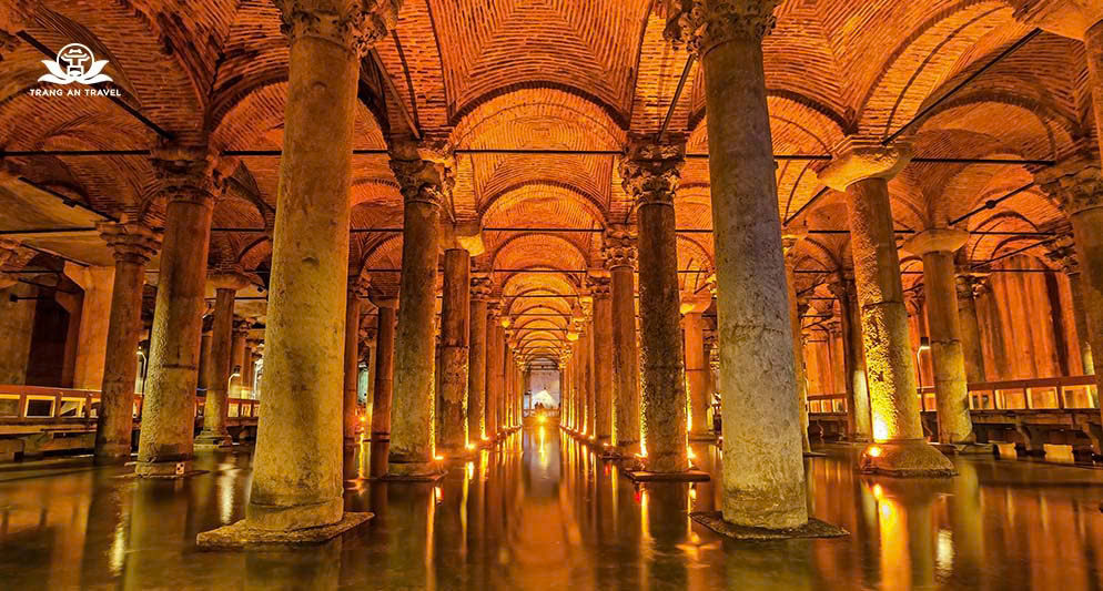 Basilica Cistern có quy mô lớn hơn bất cứ số cung điện dưới nước ở thành phố Istanbul. Du khách sẽ choáng ngợp trước 336 cột đá theo phong cách Corinthian cao 9 m để chống đỡ mái vòm bằng gạch khổng lồ trên chiều dài 140m, chiều rộng 70m cả cung điện. Cung điện dưới nước xây dựng vào năm 542, lượng nước lưu trữ của cung điện đạt tới 100.000 tấn, có thể cung cấp nước dùng cho cả thành phố trong vòng 1 tháng.