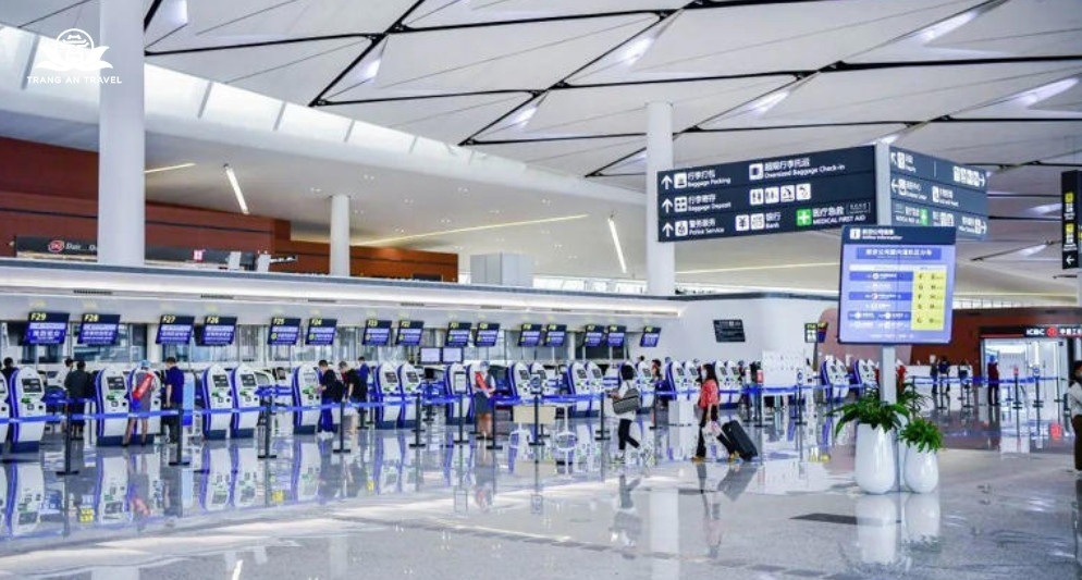 Tại đây, du khách có thể trải nghiệm đầy đủ các tiện ích như khu mua sắm miễn thuế, nhà hàng ẩm thực Trung Quốc và quốc tế, các khu vực nghỉ ngơi sang trọng, cùng hệ thống Wi-Fi miễn phí tốc độ cao.