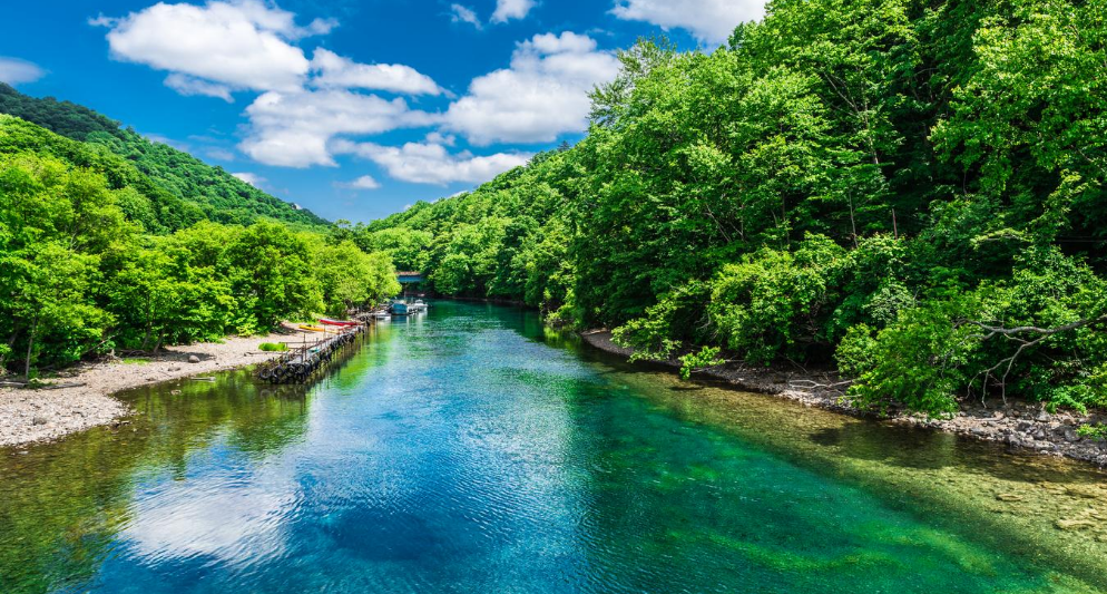 Nằm bên sông Chitose – nơi cá hồi bơi ngược dòng vào mùa thu