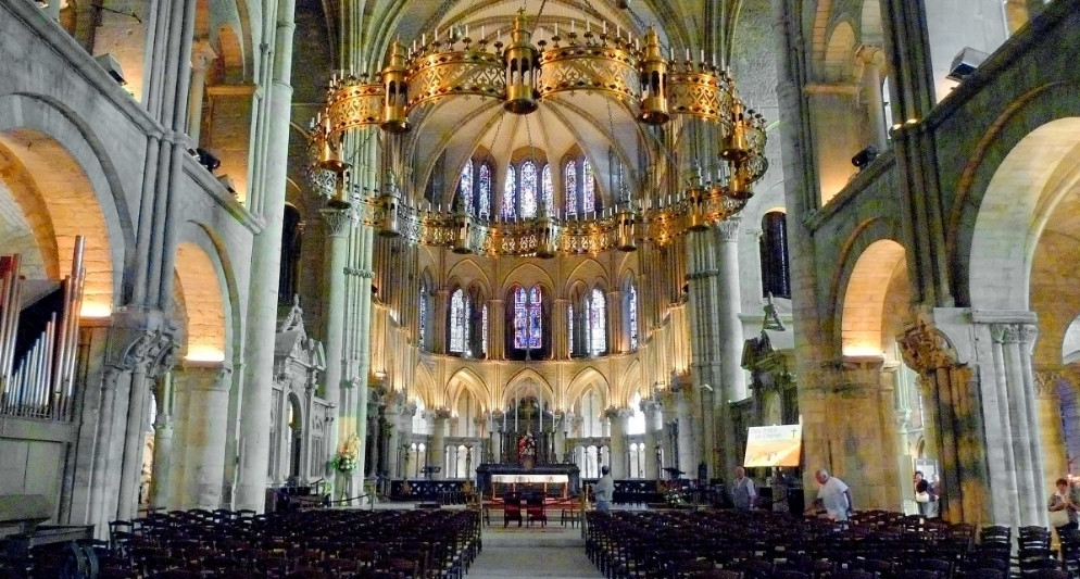 Bước chân vào Vương cung thánh đường Saint-Remi, du khách sẽ ngay lập tức cảm nhận vẻ đẹp tôn kính và linh thiêng của nơi từng là chứng nhân cho sự ra đời của nước Pháp Công giáo. Những mái vòm cao vút, những cột trụ đá đồ sộ và những bức tranh tường cổ khiến không gian bên trong trở nên huyền bí và đầy chất sử thi. Khi lang thang giữa những hành lang lát đá, người ta có thể tưởng tượng ra hình ảnh của Thánh Remi và vua Clovis I, khoảnh khắc mà nước Pháp chính thức bước vào kỷ nguyên Thiên chúa giáo.