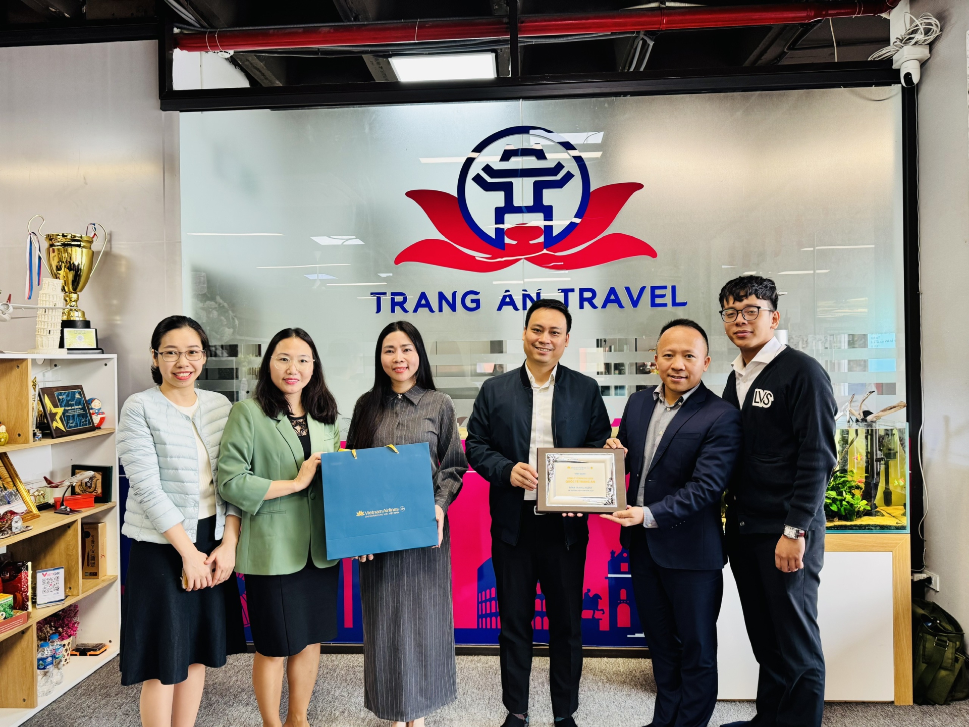 Đại diện Hãng hàng không quốc gia Việt Nam, Vietnam Airlines thăm, chúc mừng Năm mới và trao chứng nhận vinh danh tới Tràng An Travel