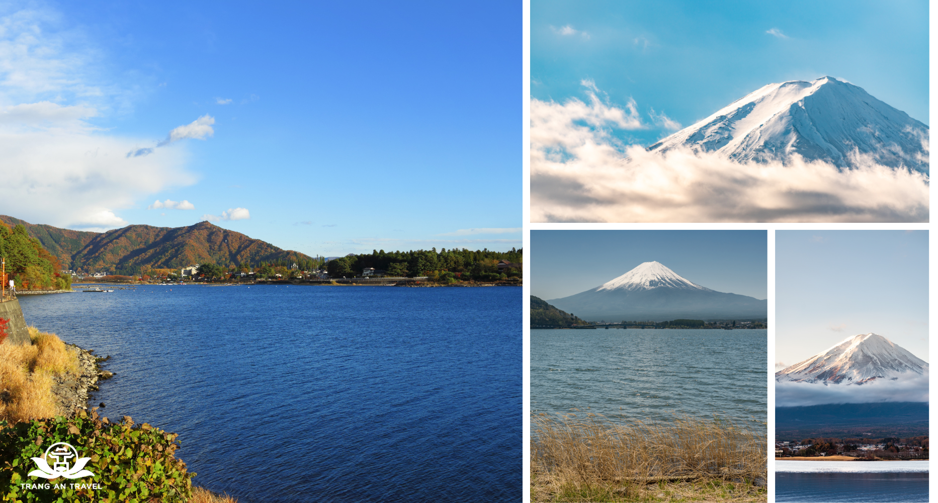 • Hồ Kawaguchi - Là một trong năm hồ gần Núi Phú Sĩ, Hồ Kawaguchi là hồ dễ ghé thăm nhất từ Tokyo . Vào một ngày trời trong xanh, bạn có thể thấy Núi Phú Sĩ in bóng rõ ràng trên mặt hồ trong như gương, đặc biệt vào mùa thu phong cảnh nơi đây sẽ càng tuyệt đẹp với sắc đỏ của lá và mặt hồ trong xanh.