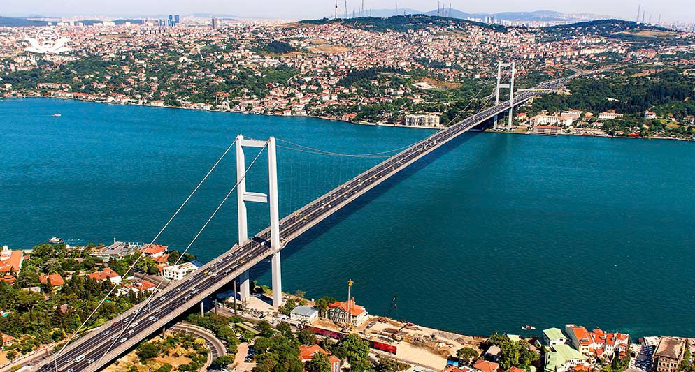 Đến du lịch Istanbul, bạn đừng quên đi qua cây cầu Bosphorus nối liền hai lục địa. Bosphorus từ lâu nằm trên một trong những tuyến đường hàng hải nhộn nhịp nhất trên thế giới, nối liền biển Đen và Marmara. Hơn nữa, đến đây, người ta sẽ chiêm ngưỡng vị trí địa lý đặc biệt, nơi có dòng chữ “Welcome to Asia”, ngược lại là “Welcome to Europe” để thực hiện chuyến đi “xuyên Âu - Á chỉ với một bước chân”.