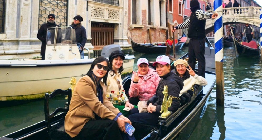 Đoàn du khách châu Âu 15 ngày 14 đêm - 8 nước: "ĐỨC – ÁO – Ý – THUỴ SĨ – LUXEMBOURG – HÀ LAN – BỈ - PHÁP của TRÀNG AN TRAVEL du ngoạn trên những dòng kênh quyến rũ ở Venice. Nơi khiến chúng tôi hồi tưởng về bối cảnh những tác phẩm văn học lừng danh mà hẳn là 'Người lái buôn thành Venice' để lại một sự ngưỡng vọng về giá trị nhân văn thời đại nó ra đời.