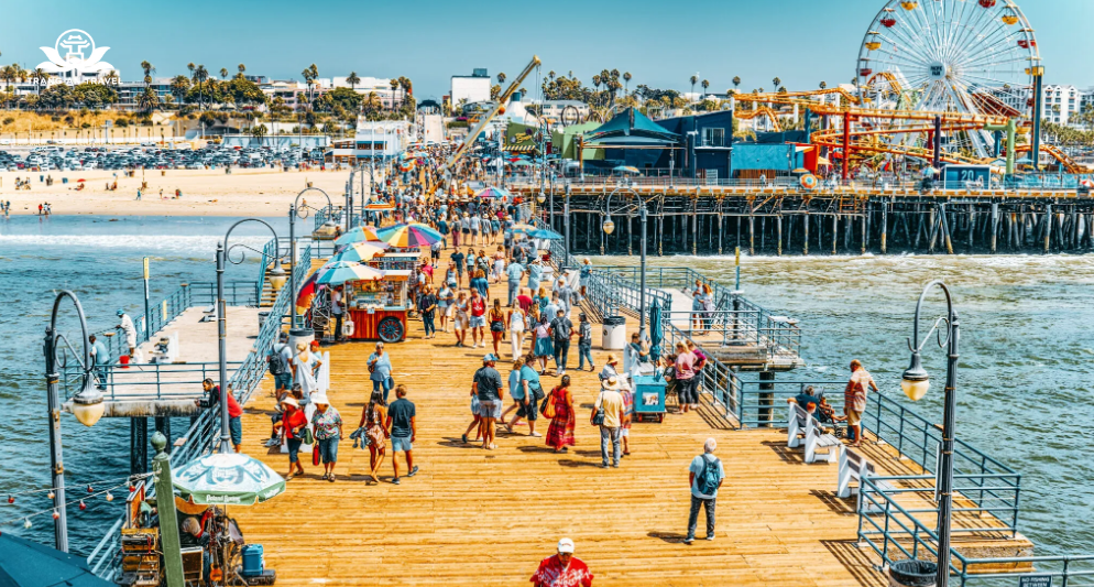 Santa Monica với cầu tàu nổi tiếng là nơi lý tưởng để tận hưởng không khí biển trong lành. Bạn có thể trải nghiệm Pacific Park – công viên giải trí ven biển với vòng quay Ferris Wheel biểu tượng. Gần đó, Venice Beach mang đến cảm giác sống động với con đường dọc bờ biển đầy màu sắc, nơi các nghệ sĩ đường phố biểu diễn, các cửa hàng độc đáo và khung cảnh hoàng hôn tuyệt đẹp.