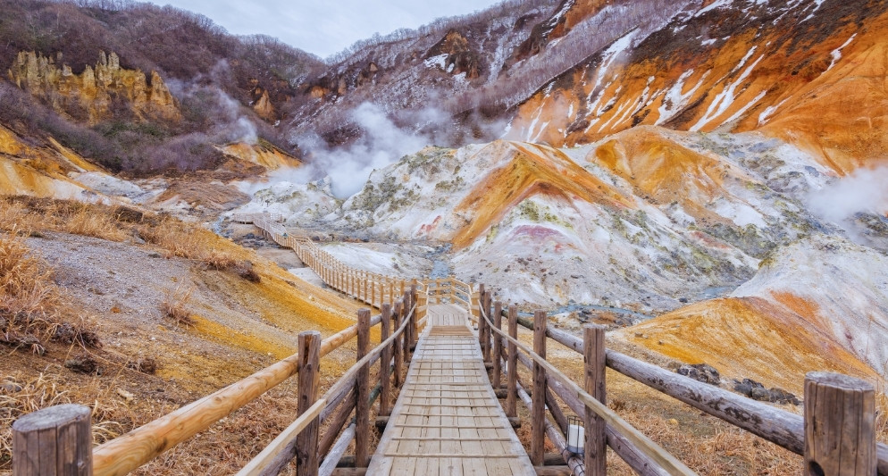 Nằm ở phía tây nam Hokkaido, Noboribetsu là điểm đến không thể bỏ qua nếu bạn yêu thích trải nghiệm onsen truyền thống, địa hình núi lửa kỳ vĩ và văn hóa Nhật Bản sâu sắc. Nơi đây nổi tiếng với thung lũng Địa ngục Jigokudani – khu vực núi lửa vẫn còn hoạt động tạo ra khói bốc nghi ngút và mùi lưu huỳnh đặc trưng.